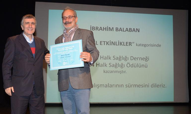 Türkiye Halk Sağlığı Derneği / 2014 Ödül Töreni / SANATSAL ETKİNLİKLER / RESSAM İBRAHİM BALABAN / 1921 yılında Bursa'nın Seçköy'ünde nakışların içinde doğdu. Köyün üç sınıflı okulundan mezun olduktan sonra, daha üst okullara yollanmadı. Okuma isteğini varlıklı olan ailesine iş görmeyerek dayattı, avunması için onu on beş yaşına kadar serbest bıraktılar. İşte bu özgürlük yıllarında her gün resimler çiziyor, günceler tutuyordu. Ressamlığı ve yazarlığı o yıllarda gelişmiş ve kök salmıştır.